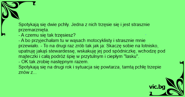 Spotykają się dwie pchły. Jedna z nich trzęsie się i jest strasznie przemarznięta.