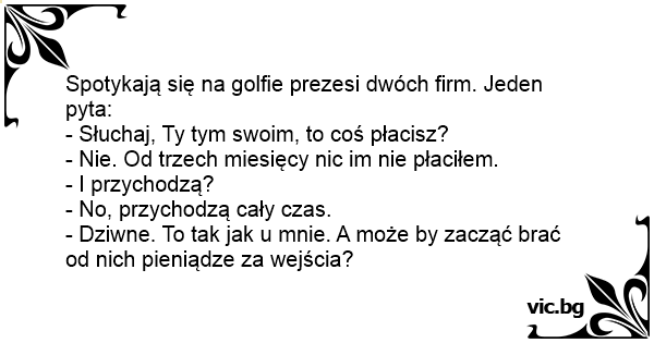 Spotykają się na golfie prezesi dwóch firm. Jeden pyta: