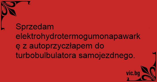 Sprzedam elektrohydrotermogumonapawarkę z autoprzyczłapem do turbobulbulatora samojezdnego.