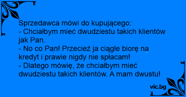 - No co Pan! Przecież ja ciągle biorę na kredyt i prawie nigdy nie spłacam!