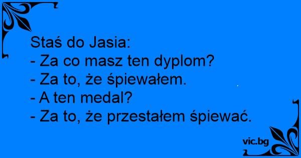 Staś do Jasia: - Za co masz...