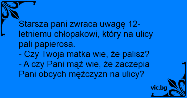 Starsza pani zwraca uwagę 12-letniemu chłopakowi, który na ulicy pali papierosa.
