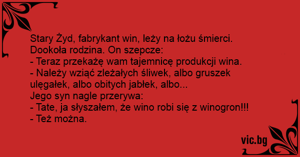 - Tate, ja słyszałem, że wino robi się z winogron!!!