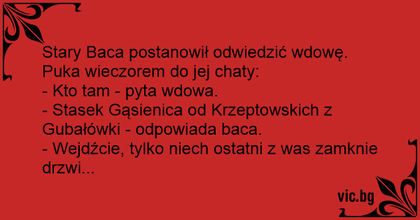 Stary Baca postanowił odwiedzić wdowę. Puka wieczorem do jej chaty: