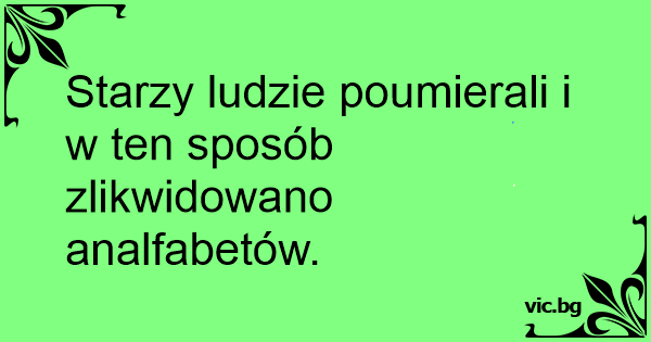 Starzy ludzie poumierali i w ten sposób zlikwidowano analfabetów.