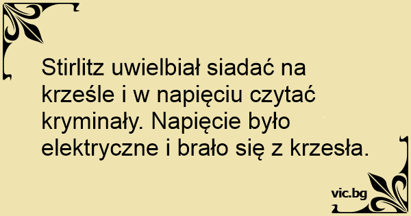 Stirlitz uwielbiał siadać na krześle i w napięciu czytać kryminały. Napięcie było elektryczne i brało się z krzesła.