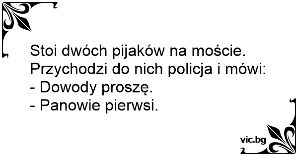 Stoi dwóch pijaków na moście. Przychodzi do nich policja i mówi: