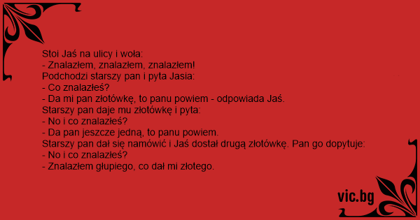 - Da mi pan złotówkę, to panu powiem - odpowiada Jaś.
