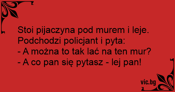 Stoi pijaczyna pod murem i leje. Podchodzi policjant i pyta: