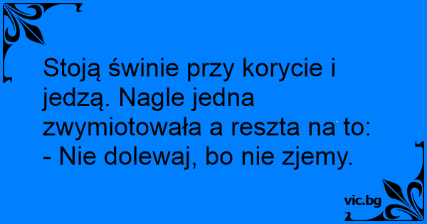 Stoją świnie przy korycie i jedzą. Nagle jedna zwymiotowała a reszta na to: