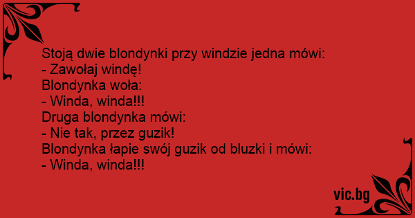 Stoją dwie blondynki przy windzie jedna mówi: