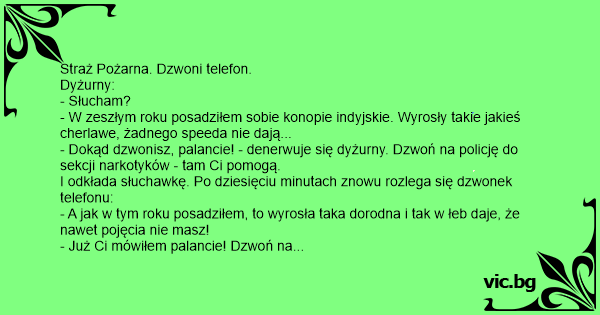 - Dokąd dzwonisz, palancie! - denerwuje się dyżurny. Dzwoń na policję do sekcji narkotyków - tam Ci pomogą.