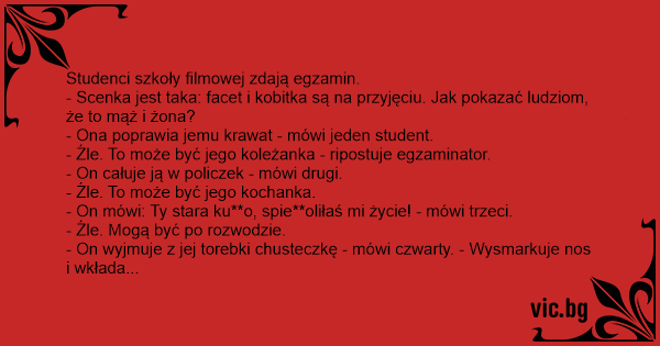 - Źle. To może być jego koleżanka - ripostuje egzaminator.