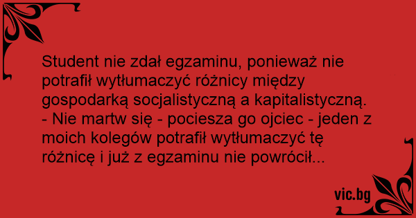 Student nie zdał egzaminu, ponieważ nie potrafił wytłumaczyć różnicy między gospodarką socjalistyczną a kapitalistyczną.