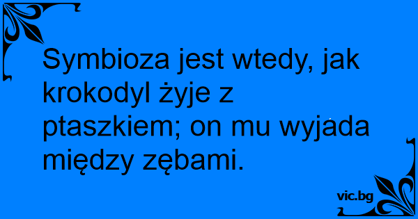 Symbioza jest wtedy, jak krokodyl żyje z ptaszkiem; on mu wyjada między zębami.