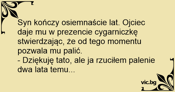 - Dziękuję tato, ale ja rzuciłem palenie dwa lata temu...