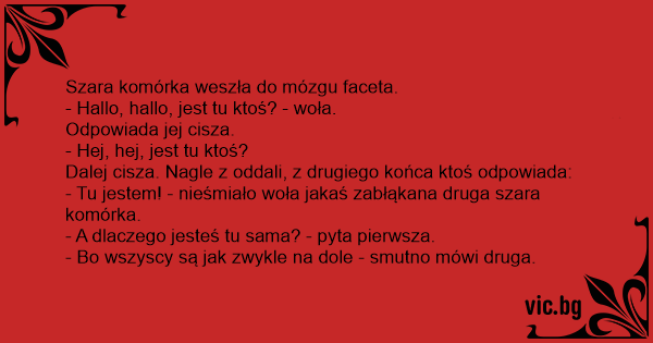 - Tu jestem! - nieśmiało woła jakaś zabłąkana druga szara komórka.