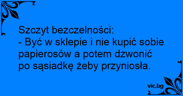 - Być w sklepie i nie kupić sobie papierosów a potem dzwonić po sąsiadkę żeby przyniosła.
