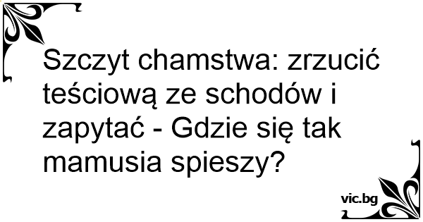 Szczyt chamstwa: zrzucić teściową ze schodów i zapytać - Gdzie się tak mamusia spieszy?
