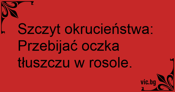 Szczyt okrucieństwa: Przebijać oczka tłuszczu w rosole.