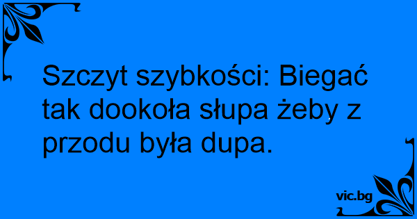 Szczyt szybkości: Biegać tak dookoła słupa żeby z przodu była dupa.