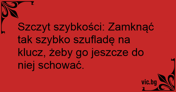 Szczyt szybkości: Zamknąć tak szybko szufladę na klucz, żeby go jeszcze do niej schować.