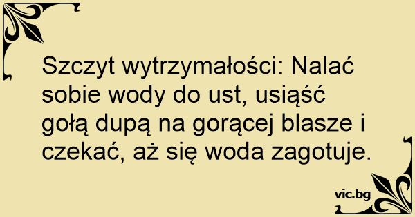 Szczyt wytrzymałości: Nalać sobie wody do ust, usiąść gołą dupą na gorącej blasze i czekać, aż się woda zagotuje.