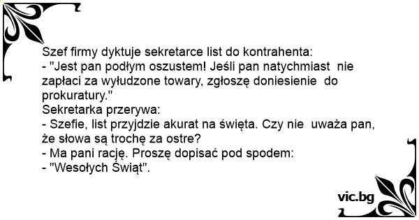 - Szefie, list przyjdzie akurat na święta. Czy nie uważa pan, że słowa są trochę za ostre?