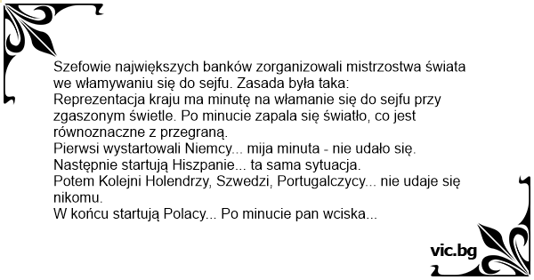 Szefowie największych banków zorganizowali mistrzostwa świata we włamywaniu się do sejfu. Zasada była taka: