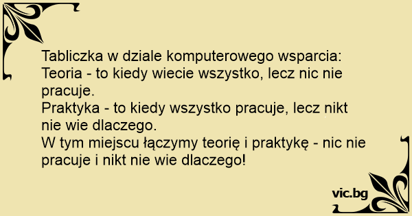 Praktyka - to kiedy wszystko pracuje, lecz nikt nie wie dlaczego.