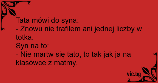 - Nie martw się tato, to tak jak ja na klasówce z matmy.
