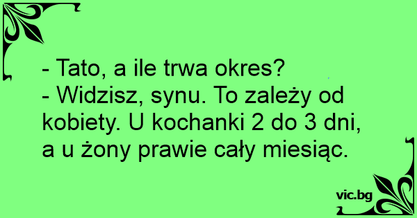 - Widzisz, synu. To zależy od kobiety. U kochanki 2 do 3 dni, a u żony prawie cały miesiąc.