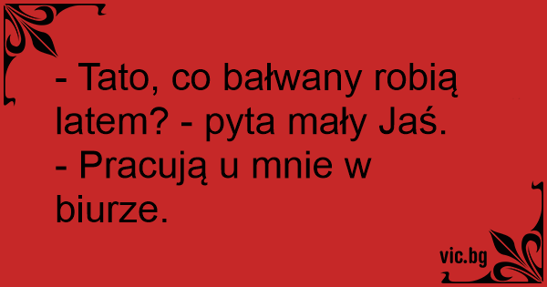 - Tato, co bałwany robią latem? - pyta mały Jaś.
