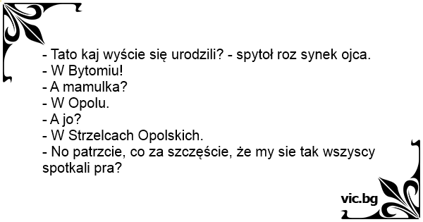 - Tato kaj wyście się urodzili? - spytoł roz synek ojca.