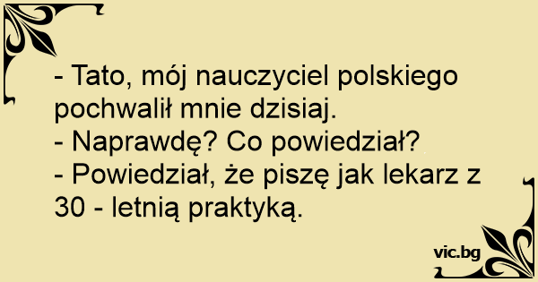 - Tato, mój nauczyciel polskiego pochwalił mnie dzisiaj.