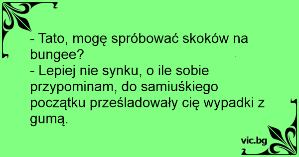 - Lepiej nie synku, o ile sobie przypominam, do samiuśkiego początku prześladowały cię wypadki z gumą.