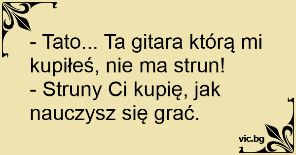 - Tato... Ta gitara którą mi kupiłeś, nie ma strun!