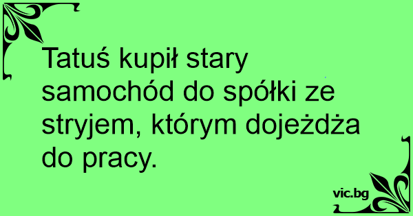 Tatuś kupił stary samochód do spółki ze stryjem, którym dojeżdża do pracy.