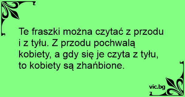 Te fraszki można czytać z przodu i z tyłu. Z przodu pochwalą kobiety, a gdy się je czyta z tyłu, to kobiety są zhańbione.