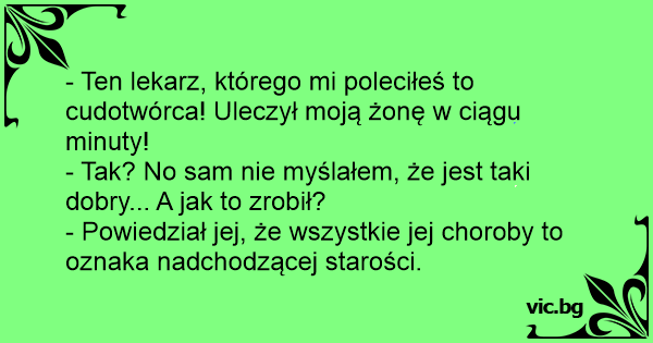 - Ten lekarz, którego mi poleciłeś to cudotwórca! Uleczył moją żonę w ciągu minuty!