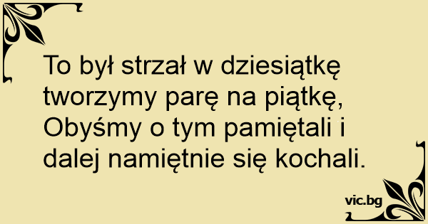 To był strzał w dziesiątkę tworzymy parę na piątkę, Obyśmy o tym pamiętali i dalej namiętnie się kochali.