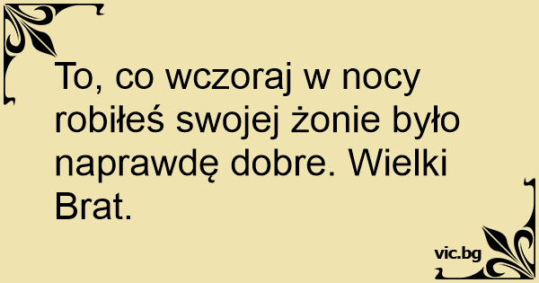 To, co wczoraj w nocy robiłeś swojej żonie było naprawdę dobre. Wielki Brat.