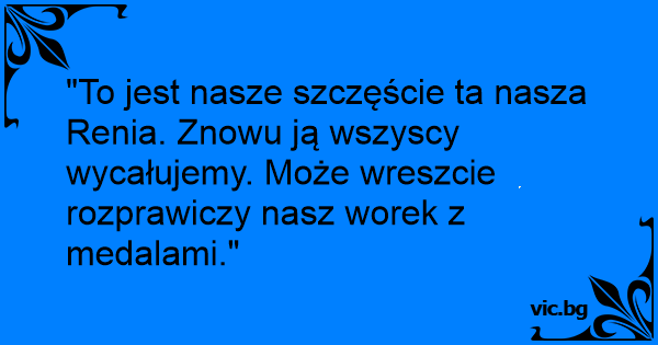 "To jest nasze szczęście ta nasza Renia. Znowu ją wszyscy wycałujemy. Może wreszcie rozprawiczy nasz worek z medalami."