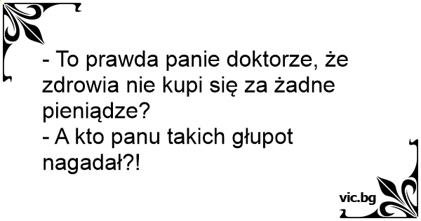 - To prawda panie doktorze, że zdrowia nie kupi się za żadne pieniądze?
