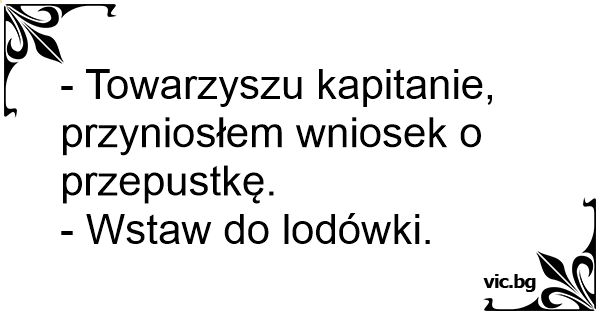 - Towarzyszu kapitanie, przyniosłem wniosek o przepustkę.