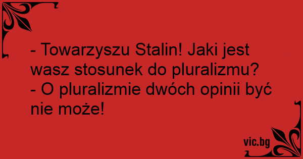 - Towarzyszu Stalin! Jaki jest wasz stosunek do pluralizmu?