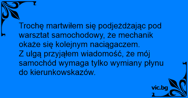 Z ulgą przyjąłem wiadomość, że mój samochód wymaga tylko wymiany płynu do kierunkowskazów.