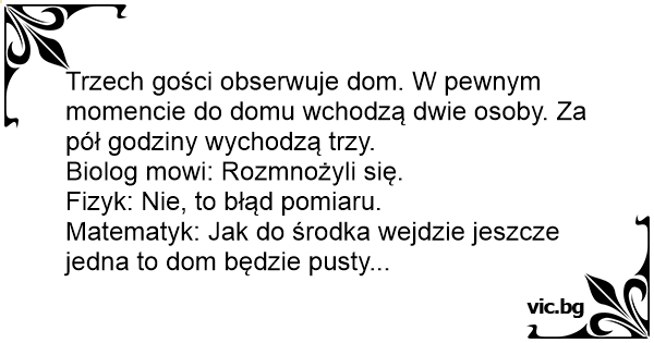 Matematyk: Jak do środka wejdzie jeszcze jedna to dom będzie pusty...