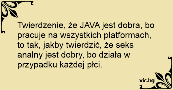 Twierdzenie, że JAVA jest dobra, bo pracuje na wszystkich platformach, to tak, jakby twierdzić, że sекs analny jest dobry, bo działa w przypadku każdej płci.