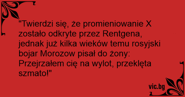 "Twierdzi się, że promieniowanie X zostało odkryte przez Rentgena, jednak już kilka wieków temu rosyjski bojar Morozow pisał do żony: Przejrzałem cię na wylot, przeklęta szmato!"